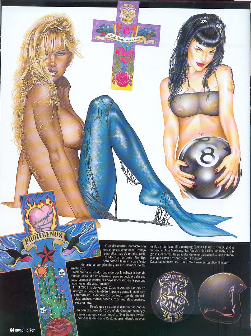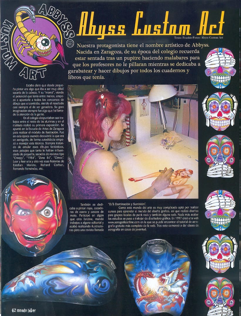 Bárbara Sánchez «Abbyss» es una de las mejores tatuadores de Zaragoza. Empieza a experimentar con el aerógrafo mas o menos durante su paso por la escuela de arte. Entonces sus influencias eran el cine y el cómic de terror y ciencia ficción. Su autor favorito era y sigue siendo Esteban Maroto.